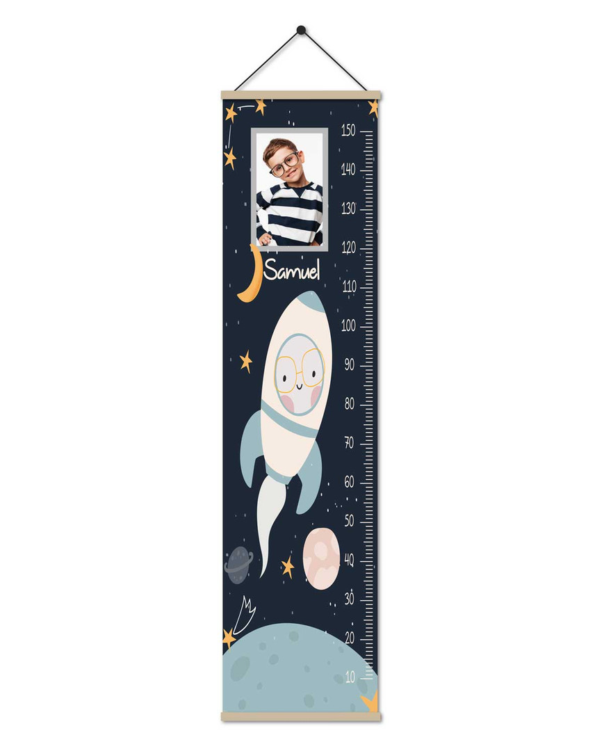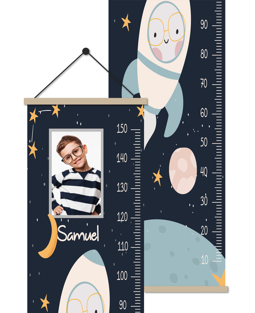 ¡Lleva a tu hijo a una aventura espacial con este tallimetro infantil divertido y educativo! Con su diseño de astronautas, podrá imaginar y explorar el espacio mientras mira cómo crece mes a mes. ¡Llévate nuestro tallímetro infantil con motivo de astronautas y déjale explorar los confines del universo!. Puedes personalizarlo con el nombre y la foto de tu hijo.